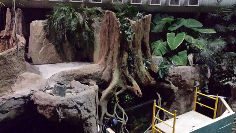 We have built exhibits and large sculptures for zoos, aquariums, museums, and botanic gardens, but our goal is to focus on small to medium-sized projects. We specialize in sculpting concrete and plaster to create beautiful design features for your home, garden, or commercial areas. Outdoor kitchens, concrete overlays/concrete resurfacing, artificial rock, and more! We are happy to collaborate on specific aspects of large projects.