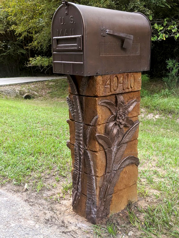 Stand apart from the basic pole or stacked brick with a personalized design sculpted into your new mailbox base. We can add package delivery spots, planters, lights, and more!