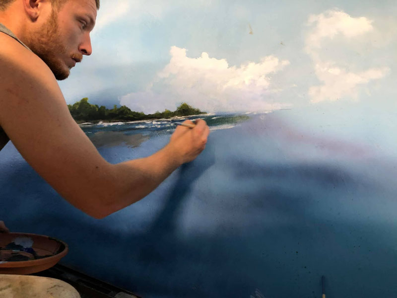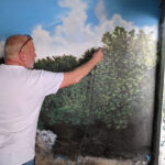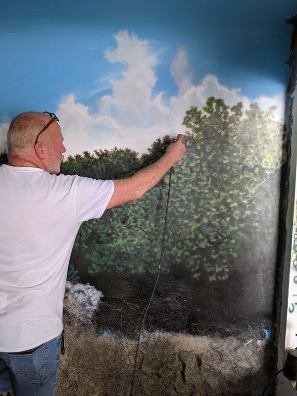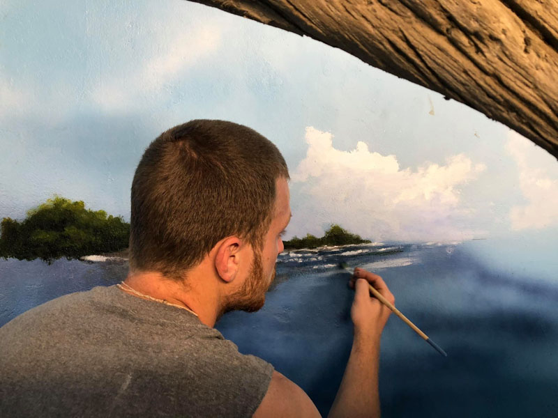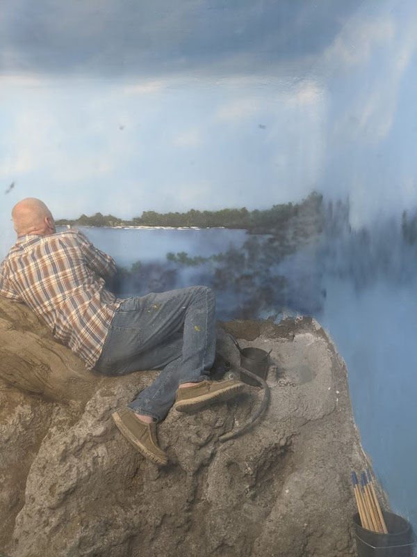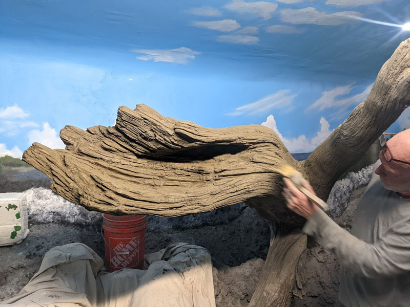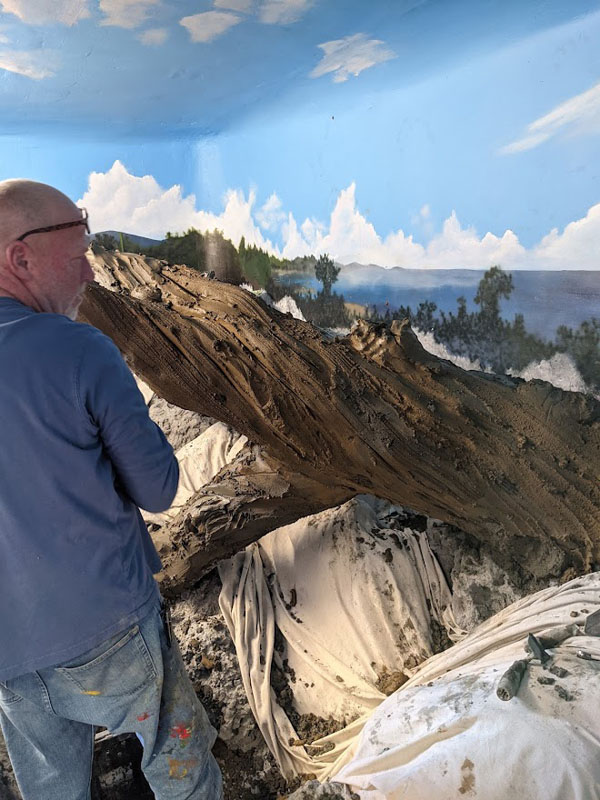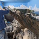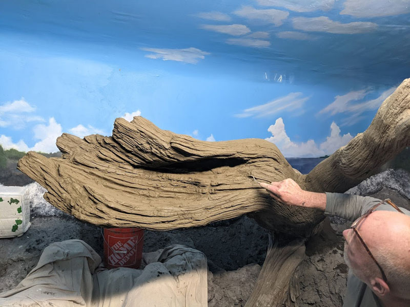 This iguana ( Cyclura ricordii) exhibit was commissioned by a private collector. They wanted everything to have the look and feel of the ricordii’s natural environment, the island of Hispaniola. Hispaniola features beaches of jagged rock, driftwood, palms, and cacti, all of which we included when making this exhibit. This was a complete turn-key exhibit, we did everything from the rockwork to the mural, the heat lamp installation to the sculpted concrete log.